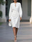 Este modelo apresenta mangas longas com punho marcado, decote discreto com abertura frontal e um drapeado lateral que valoriza a silhueta. O comprimento midi e o corte ajustado tornam esse vestido ideal para eventos formais, jantares refinados, casamentos civis ou produções de trabalho com muito estilo.