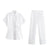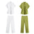 Disponível em cores clássicas e sofisticadas, como branco e verde oliva, o conjunto é confeccionado em tecido leve e confortável, garantindo frescor e elegância em qualquer estação.