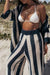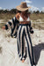 A camisa oversized tem modelagem ampla, mangas 3/4 e decote em V com gola estruturada, trazendo um toque despojado e elegante. A calça reta com cintura alta valoriza a silhueta com conforto, fluidez e liberdade de movimentos. A padronagem em listras verticais em tons de caramelo e off-white alonga visualmente o corpo e remete ao estilo resort europeu.