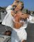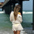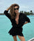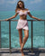 A camisa em tecido fluido com transparência delicada oferece frescor e charme, podendo ser usada aberta, amarrada ou fechada, criando diferentes propostas. A saia com babado e cintura alta valoriza a silhueta, garantindo feminilidade e movimento.