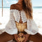 Apresentando mangas rendadas que adicionam um toque de elegância e sofisticação, este cropped é ideal para diversas ocasiões, desde encontros casuais até eventos especiais.